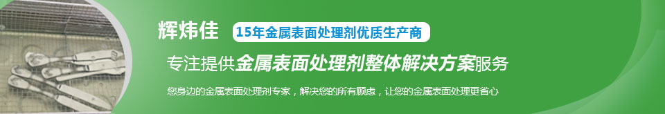 廣東輝煒佳科技有限公司,成立于1997年,是一家集科、工、貿為一體的科技型公司。輝煒佳研發推廣了一系列專業的環保型金屬表面處理劑產品,如:無鉻鈍化劑、三價鉻鈍化劑、鎂合金鈍化劑、無磷陶化劑,以及鋼鐵及鍍鋅件的磷化、鈍化等等。歡迎前來咨詢:0769-83636990。